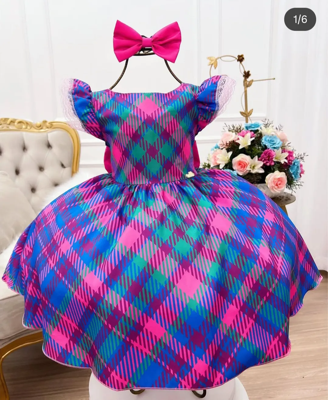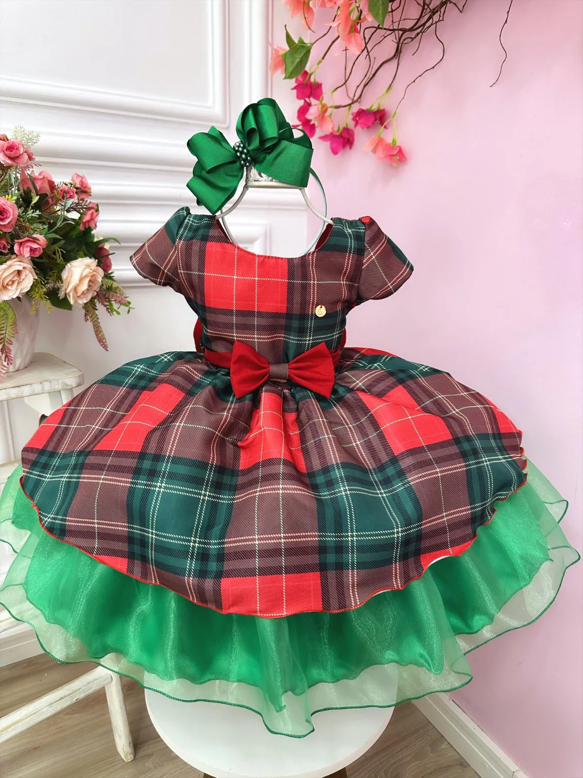 Vestido xadrez vermelho e verde