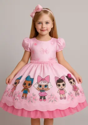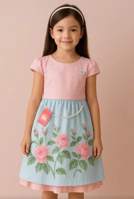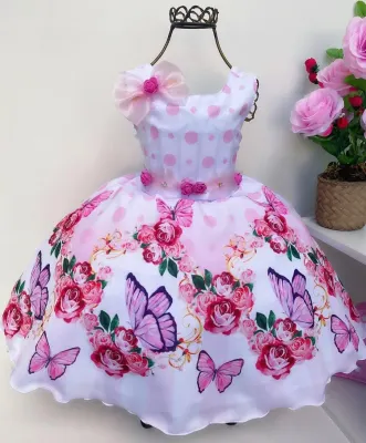 Romper/vestido rosa jardim borboletas