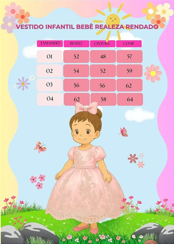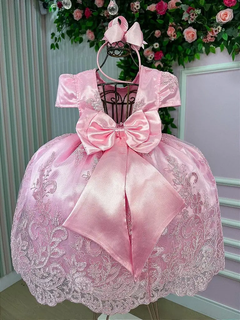 Vestido Realeza Rosa Bebê: Elegância e delicadeza para ocasiões especiais.