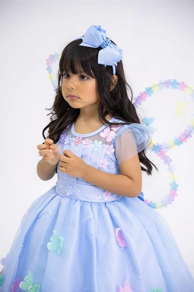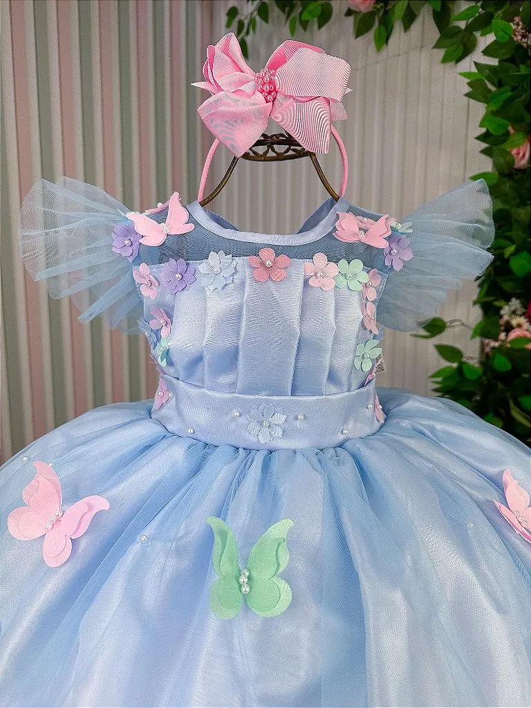 Vestido azul bebê jardim