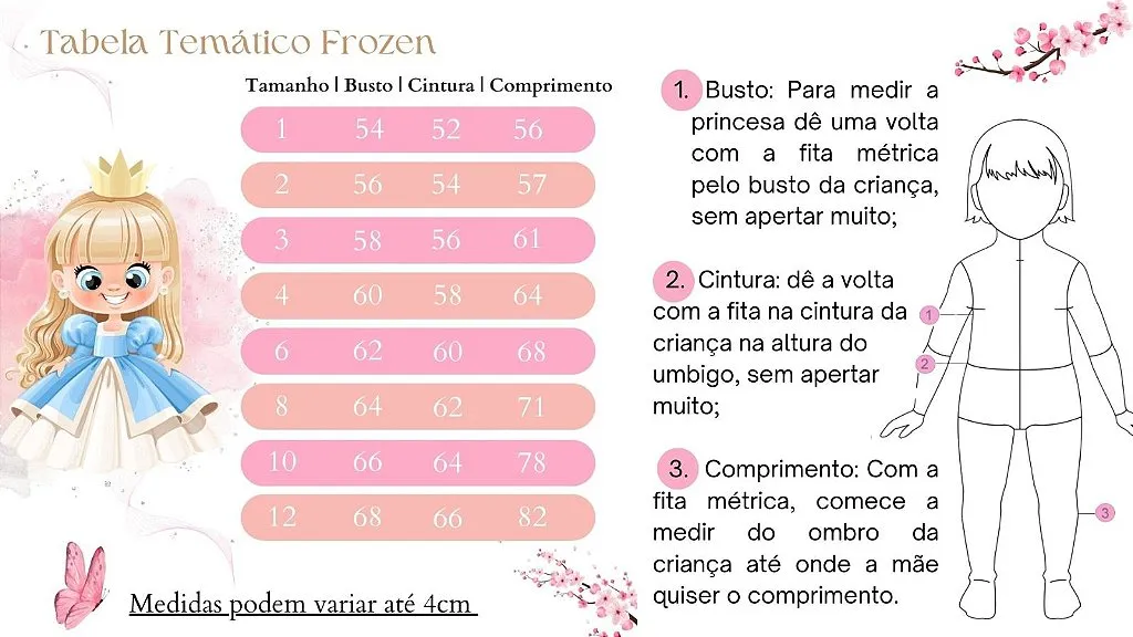 O Vestido Frozen Fantasia traz a magia do mundo encantado diretamente para o seu guarda-roupa. Com um design inspirado nos adorados personagens de Frozen, este vestido é perfeito para festas, eventos especiais ou momentos de brincadeira. Ele combina conforto e estilo, permitindo que as crianças se sintam como verdadeiras princesas.