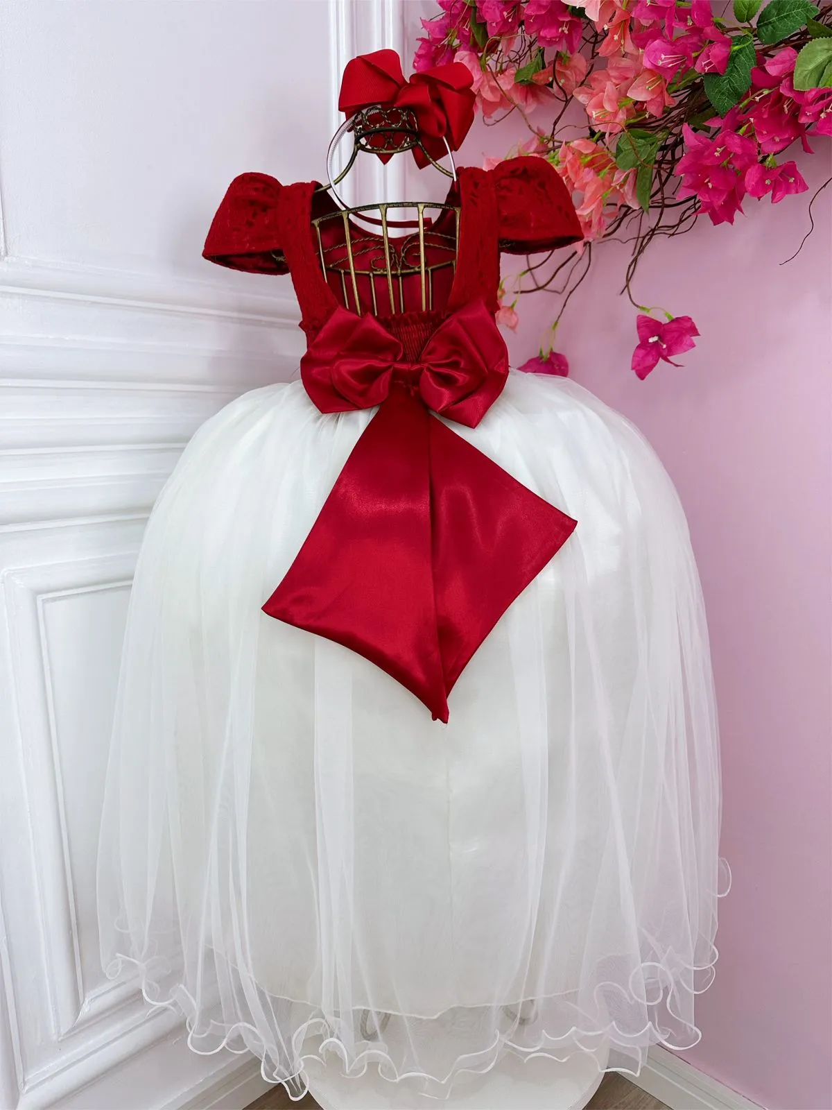 Vestido vermelho e branco